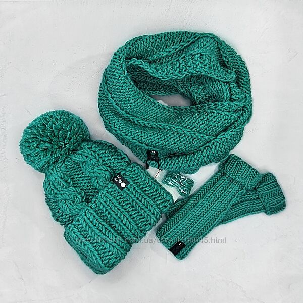 Подробное описание: хіт комплект обємна Шапка біні Снуд Мітенки Рукавички