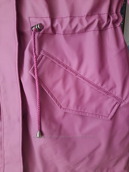 Удобная, тёплая и красивая. Непромокаемая и непродуваемая ткань. Капюшон не отстёгивается. Есть карманы. Комфортная и стильная!