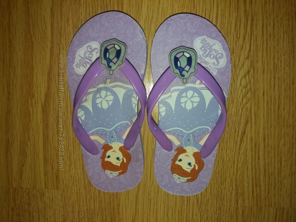 Вьетнамки - шлепки для принцесс с Софией. Состояние новых, одели 1 раз, но окозались малы. Тем не менее дочурка умудрилась зацепиться и слегка поцарапать спереди, но это практически не видно (показала на фото ). Размер -9/26, длина по стельке - 16,5 см.Другие объявления продавца