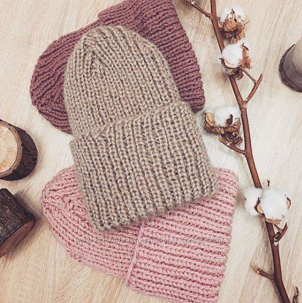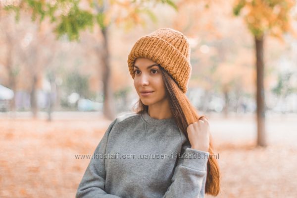Подробное описание: Объемная шапка из шерсти альпака грубой вязки. Шапочка бини с подворотом