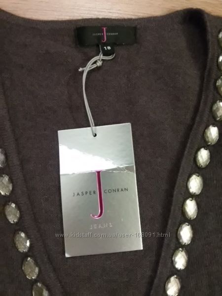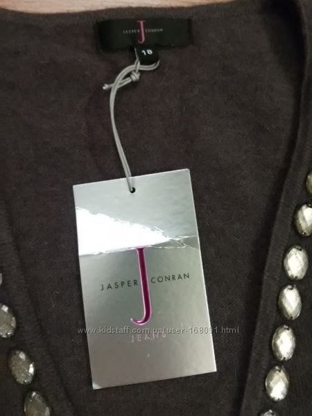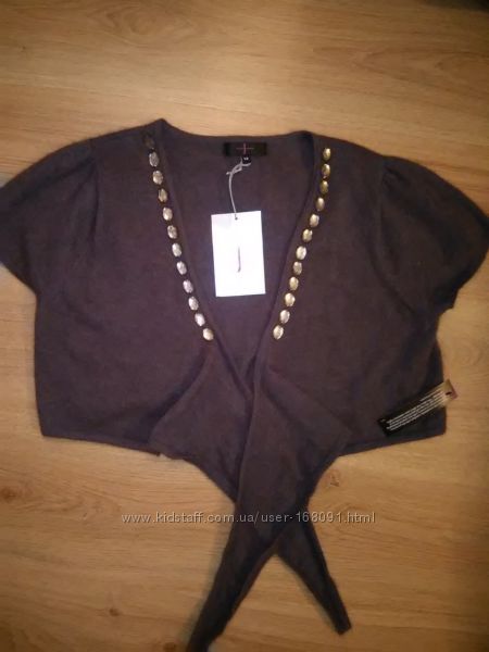 Нарядное и теплое новое болеро от дизайнера Jasperа Conranа,цвет серо-коричневый,очень хорошее качество:шерсть,ангора и нейлон,украшено плоскими бусинами,размер маломерит ,написано 18,но идет на 14-16,наш размер 48-50.Длина по спинке 35 см.Дефектов нет
