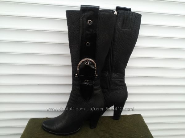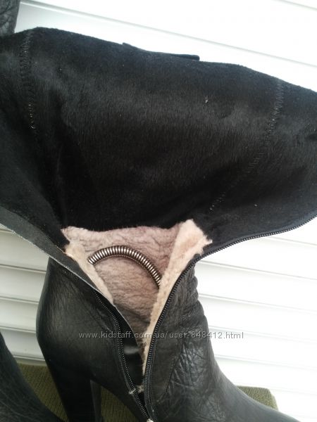 Кожаные чёрные зимние сапоги. 39 размер. Торговая марка Sasha Fabiani. Светлый мех внутри сапог - натуральный, чёрный- искусственный.параметры