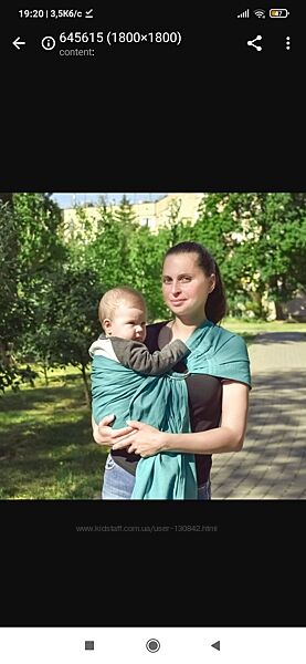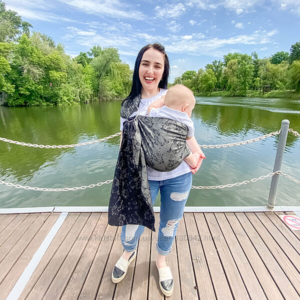 Слинг безразмерный. Благодаря отсутствию подклада и синтепоновых бортиков слинг становится очень легким и может затягиваться до любого размера. Длина слинга - 2 метра.