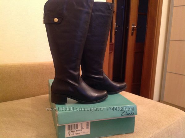 Шикарные сапоги Clarks размер указан 3, тоесть 35,5. По стельке намерила 23,5 см (но на с выпуклостями, с подушечками для комфортного длительного ношения. Лучше сядут на ногу 22.5-23 см. Изготовлены из мягчайшей кожи по типу перчаточной. Внутри кожа тоже, стелька кожанная дышащая, колодка удобная. Высота сапога 41 см, каблук 4 см. Голенище вверху не узкое, широкое, но в этом весь их стиль. В самом широком месте обхват 40 см. Покупала себе на официальном сайте в приступе шопоголизма, пока лишние, таких же парочка есть)))Другие объявления продавца