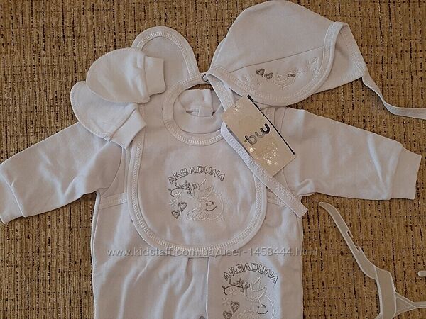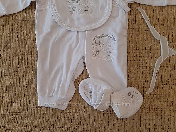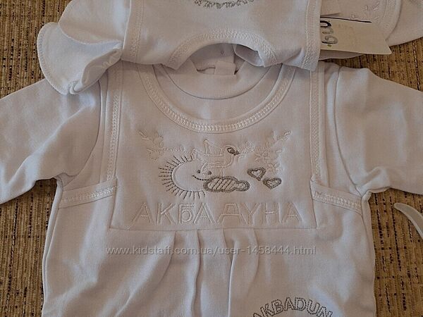 Костюм комплект человечек пинетки слюнявчик шапочка в роддом на крестиныРазмер 1 рост 56-62 Сирия