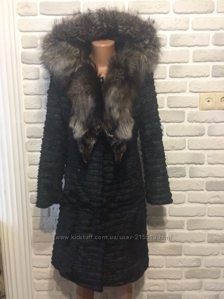 Шуба, шубка, полушубок Бобрик, чернобурка Капюшон, пояс
