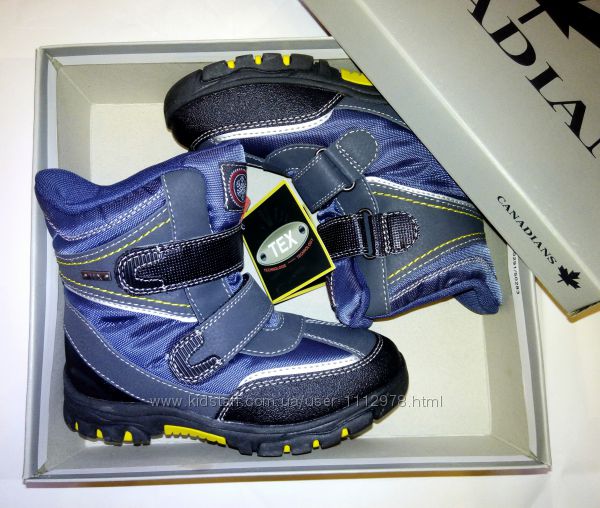 Красивые, качественные и очень удобные фирменные ботинки ТМ Canadians (немецкий бренд, который создает максимально комфортную и качественную обувь), сделаны по типу термоботинок (не пропускают холод и не выпускают тепло), не тяжёлые, не промокают (сделаны на основе мембраны ТЕХ), есть две крепкие липучки для регулировки по ножке. Полнота средняя, внутри подкладка из искусственного меха. Каждая пара идет в фирменной коробке.Замеры по стельке: