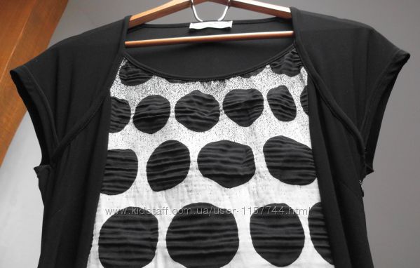Крутое, стильное и очень универсальное платье.Цвет насыщенный чёрный с вставкой. Вставка гофрированна, особенно в местах, где горошек.