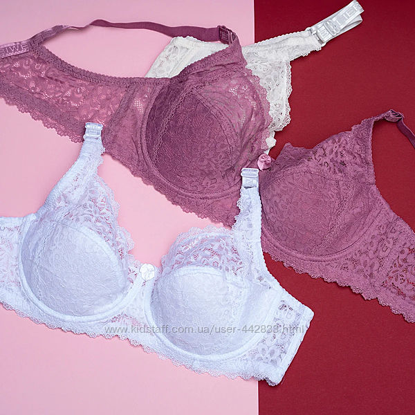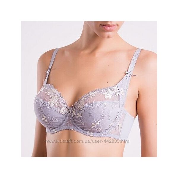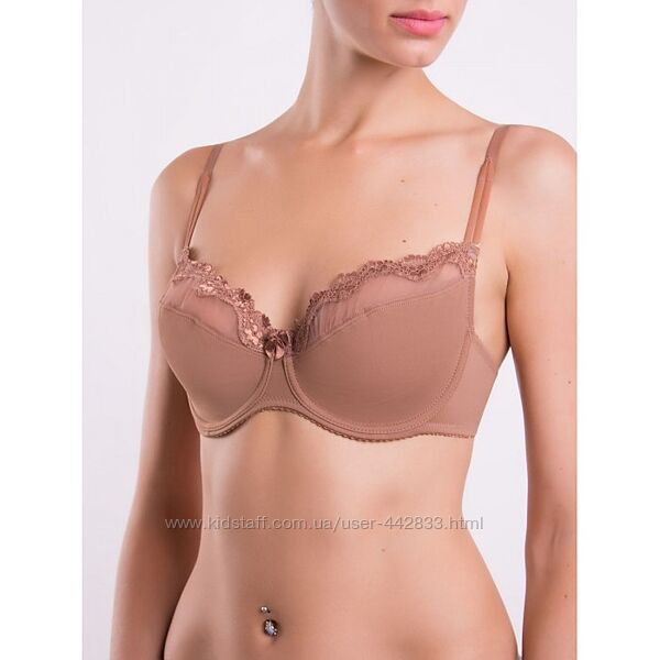 Бюстгальтер з мереживними чашками, на кісточках, з бавовняною підкладкою та мереживною спинкою. Підкладка на 3/4 чашки, застібка на 2 гачки, широкі бретельки, не знімні.