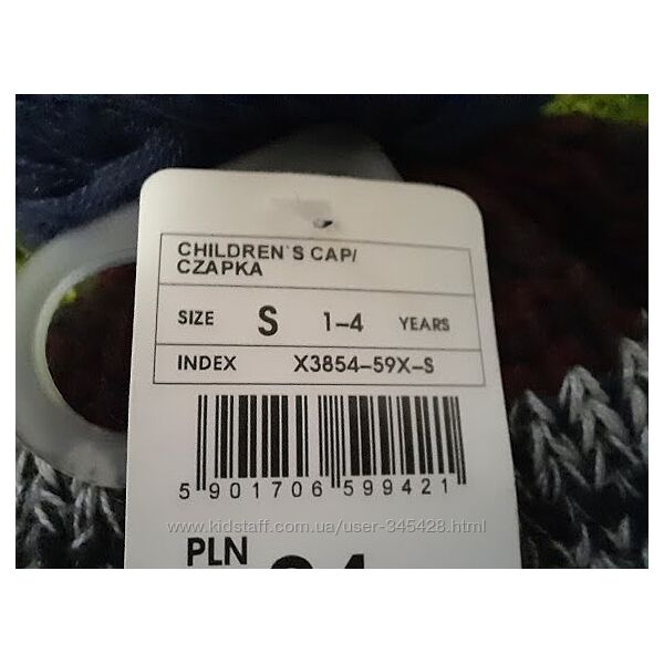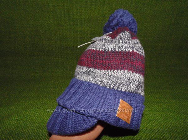 Фото 7-10: Теплая полосатая шапка с козырьком Reserved. Размер-1-4г.