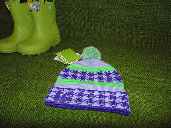 Фото 4-6: Яркая демисезонная шапка с помпоном Crocs.