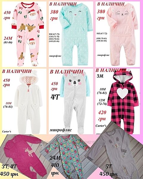 Тёплые слипы Картерс в наличииЦена и размер подписаны на фото!!!