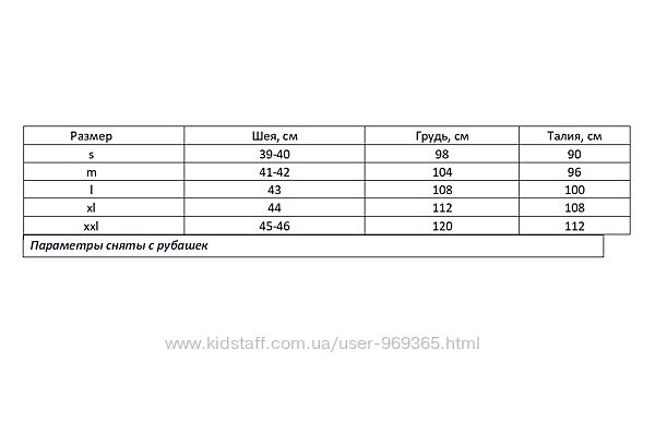 В объявлении есть ТАБЛИЦА РАЗМЕРОВ(Последнее фото), прошу обратить Ваше внимание на то что, в таблице замеры с рубашек.