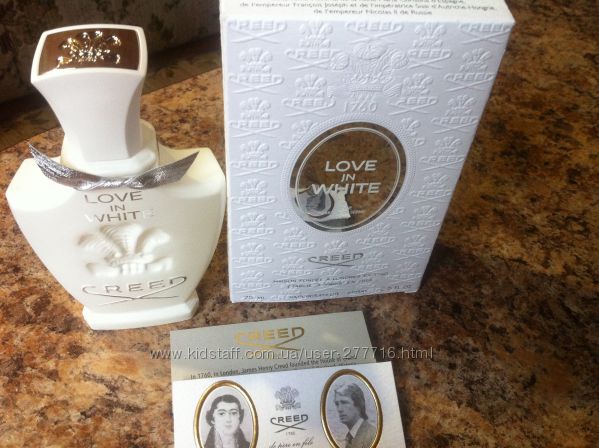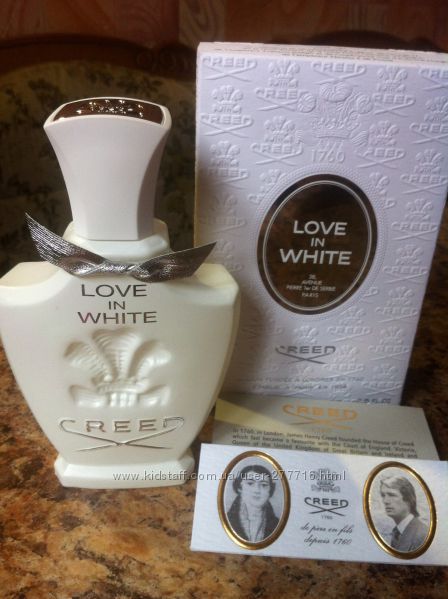 Love in White Creed - это аромат для женщин, принадлежит к группе ароматов восточные цветочные. Love in White выпущен в 2005. Love in White был создан Olivier Creed Sixth Generation и Erwin Creed Seventh Generation. Верхняя нота: Апельсиновая кожура; ноты сердца: Ирис, Нарцисс, Магнолия, Рис, Итальянский жасмин и Болгарская роза; ноты базы: Сандал, Ваниль и Серая амбра.