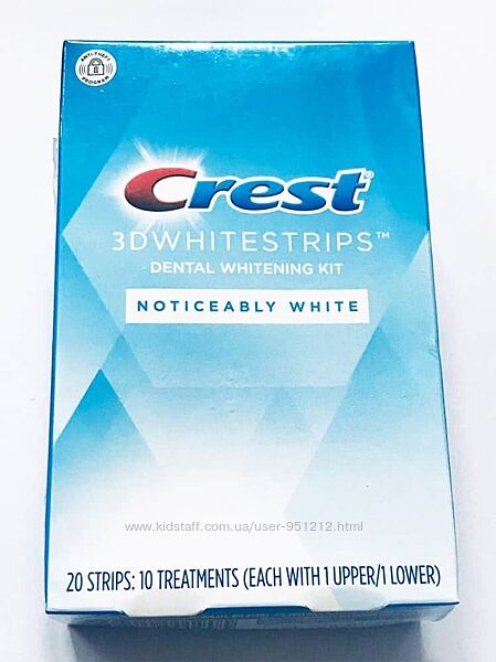 - В упаковке Crest Noticeably White - 10 пакетиков (20 отбеливающих полосок )