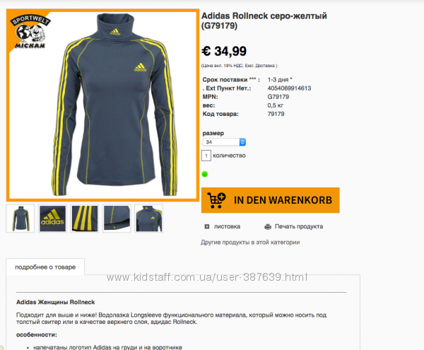Цена эквалент 34 евроЦены уточняйте, цена эквивалент 34 евроТермо рубашка, футболка Adidas EAN:4054069914613 размер 34 Оригинал