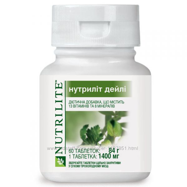 Комплекс Nutrilite Дейлі є швидким і зручним способом отримати основні поживні речовин на кожен день, необхідні вашому організму для підтримання хорошого самопочуття2 та заповнення потенційних прогалин у раціоні. Він містить 20 вітамінів і мінералів, а також 4 рослинні компоненти, які отримані з рослин, вирощених на екологічно чистих фермах.