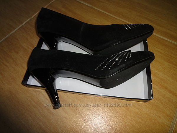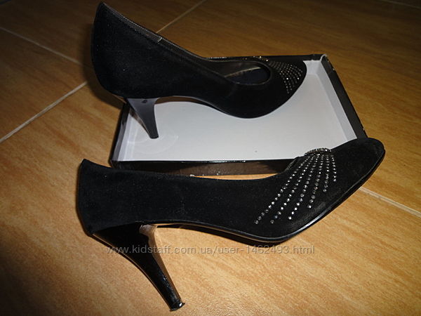 туфли почти новые одеты несколько разцвет черный камушки приклеены качественно ни один не выпал высота каблука 8 см на одном каблуке есть царапина не заметная