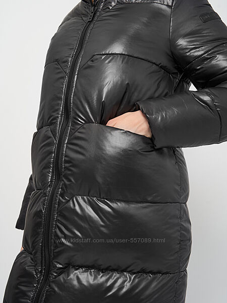 Застегивается пальто на молнию. На рукаве имеется кожаная нашивка с логотипом фирмы.