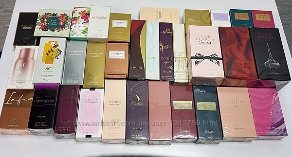 Подробное описание: Туалетные воды Amber Elixir Crystal Divine Lucia Aura Elvie Possess