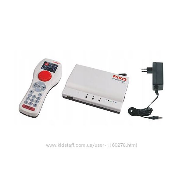 Цифовий стартовий набір модельної залізниці Piko 59107 складається з електровоза та двох пасажирських вагонів SBB. До комплекту стартового набору Piko 59107 входить все, що необхідно для початку експлуатації залізниці: пристрої керування, блок живлення від електромережі, локомотив з вагонами та рейки. Нескладні в складанні та розбиранні, надійні в роботі та легкі в обслуговуванні, набори Piko дозволяють навіть дітям самостійно збирати дорожні схеми та керувати залізницею.У стартовому наборі Piko 59107 цифрова система керування Piko Smart Control WLAN. Цифрова система дозволяє дистанційно керувати локомотивами незалежно один від одного, з можливістю руху в різних напрямках та з різною швидкістю. Piko Smart Control WLAN дозволяє керувати 4-ма поїздами без додавання жодних додаткових підсилювачів