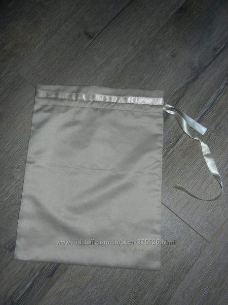 Фирменный оригинальный пыльник Calvin Klein, красивого светло - бежевого цвета с легким перламутровым оттенком, затягивается на атласную ленту.