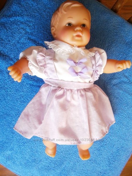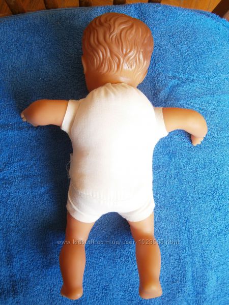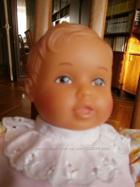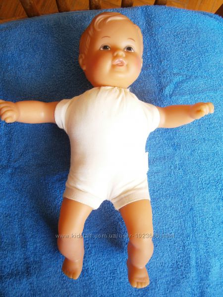 Продам небольшого, 24 см. ростом милого пупсика, б/у, но в очень хорошем состоянии. Явных пятен нет, резиновые части тела не разрисованы-расписаны, не запачканные.Очень симпатичное личико, карие рисованные глазки, тело цельнонабивное, голова, ручки и ножки резиновые. Торга и возврата нет.