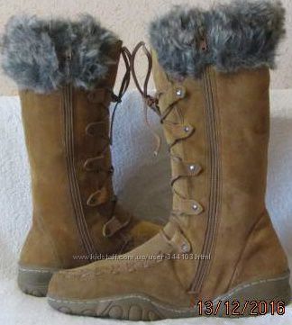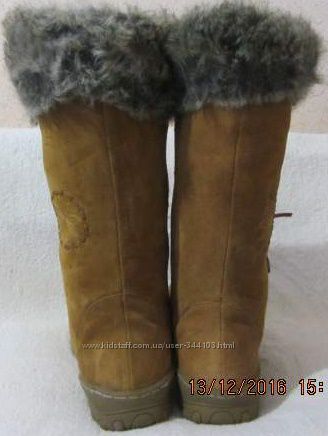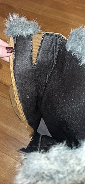 сапоги нат. замша, длина стельки около 26,5см. Подклад в виде чего-то тонкого, приятно-мягенького, обтянутого синт. тканью. На одном из сапог, под молнией, по-над швом, небольшое количество (1,5мм) клея, залезшего на замш.(посл.фото). Да, ещё если приглядываться, есть надорванность одного из шнурков, видно только в развязанном виде, в завязанном- не заметно (посл.фото). Носки, задники и проч.- не содраны, но есть незначительные следы носки (это замш и я перед фотографированием их специально не чистила, чтобы потенц. Покупатель мог видеть реальное состояние, без прикрас). Если почистить- будут выглядеть намного лучше. Подошва- полиуретан ( или как правильно называется этот материал), неубиваемая, прошиты качественно. Есть оезиночка изнутри, позволяющая варьировать полноту ноги+ удобно подбирать под себя полноту и за счёт шнуровки. Измерить полноценно стельку не могу, не съёмная, позиционированы как 41 размер.Цена, учитывая всю, вышеизложенную, инфу). Без торга.