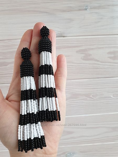 Серьги-кисточки из бисера. Ручная работа, используется чешский бисер, швензы (пусеты) - медицинская сталь. Длина сережки 11 см, вес 1 серьги около 14,5 гр. Под заказ, любой цвет и размер. Срок изготовления 2-5 дней. Цена 350 грнЕлена 067-732-40-20