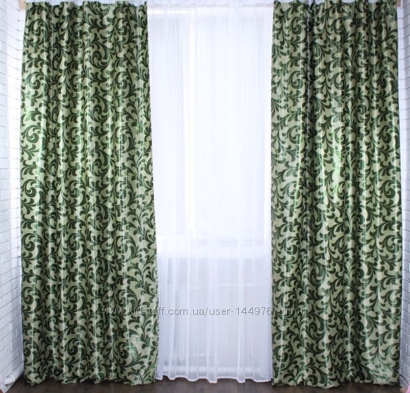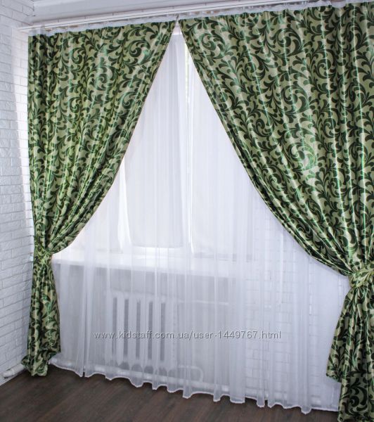 Подробное описание: Комплект готовых штор. Цвет - зеленый.