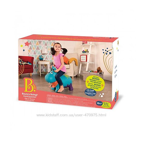 Стрибати дуже легко і зручно, головне - триматися за міцні вушка.Яскравий привабливий персонаж не тільки розважить малюка, а й стане прикрасою дитячої кімнати.Стрибун надувається дуже швидко і просто за допомогою насоса, який входить в комплект.Баттатострибун - ГIПОПОТАМ-ТАМ-ТАМ допоможе поліпшити у малюка сприйняття простору та фізичний розвиток.
