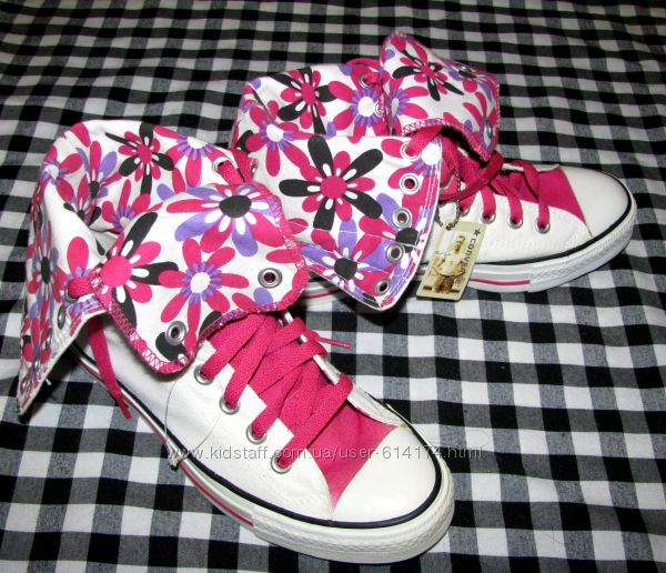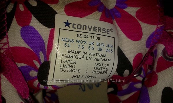 1.Дуже класні конверси All *Star(оригинал) можна носити з підкатом або високими 5/38 р. Устілка по лейбі 24.5см, по моїм замірам 25,стан відмінний ,на одном резина на підошві злегка жовтіша, ледь помітно.