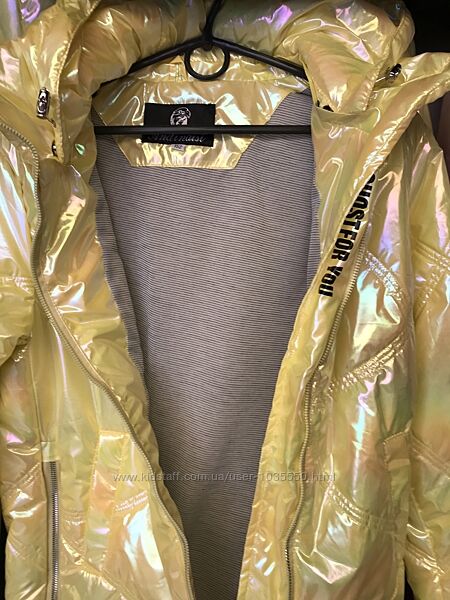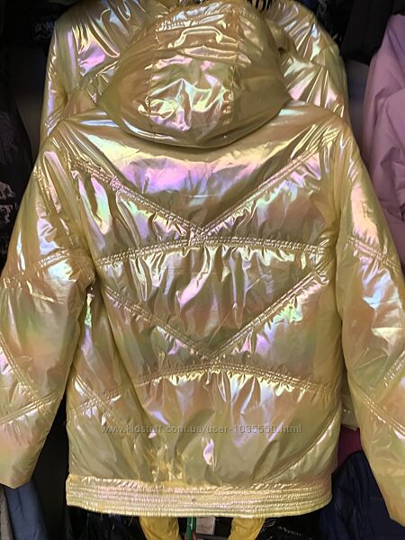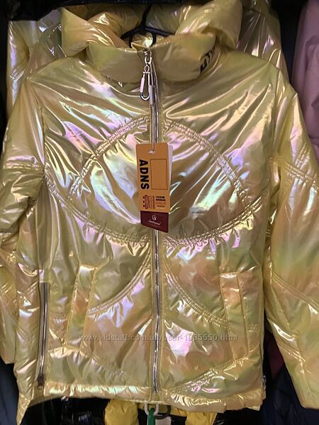 НОВИНКА ЭТОЙ ВЕСНЫ!!!Демисезонная куртка на девочку от бренда Andinaisi.Цвет желтый.Размеры 140-164р.Наполнитель холлофайбер.Капюшон отстёгивается и затягивается на кулиски.Модель прямого покроя,укорочённая.Выполнена из перламутровой модной ткани.Спереди два кармана.Застежка на молнии.Рукава с отворотом для регулировки длины и трикотажным манжетом для тепла.
