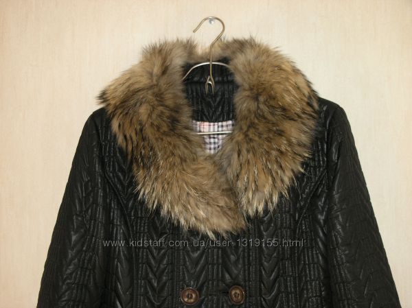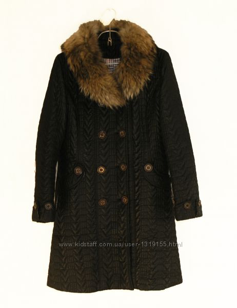 Стеганное демисизонное пальто со сьемным меховым воротником