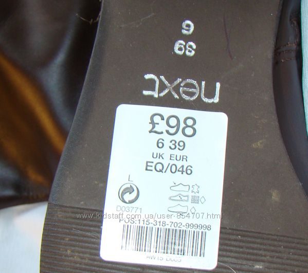 Размер 38 (указан 39). Длина стельки 25,3 см. Ширина стельки 8 см. высота каблука 3 см. Высота голенища 46 см. Ширина голенища вверху 20,5 см.