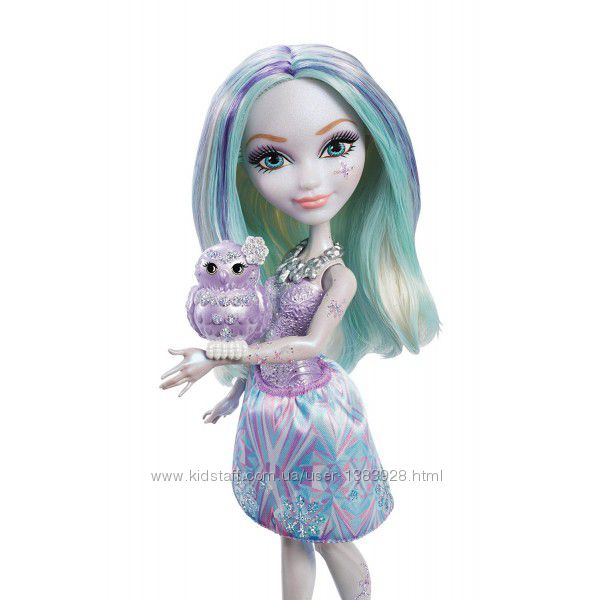Вашему вниманию предлагается игровой набор Эвер Афтер Хай с Кристал Винтер, серии Эпическая зима. Дочь Снежной Королевы Кристал Винтер в игровом наборе со снежной установкой имеет длинные распущенные волнистые волосы мятного цвета с фиолетовыми прядками, мягкий макияж. Кукла одета в корсет сиреневого цвета с узором из снежинок, юбочку с узором из голубых и сиреневых кристаллов, на ножках розовые босоножки. Из аксессуаров Кристал имеет ожерелье в форме кристаллов льда и голубую сумочку в форме снежинки. Ручки куклы застыли в элегантом жесте, а ножки шарнирные. В комплект входят наклейки с помощью которых можно украсить куклу и ее питомца - сову. С помощью снежной установки можно украсить куклу и ее сову зимними сверкающими узорами. Для этого в установку засыпаются блестки, те места на кукле, которые должны быть украшены блестками промазываются специальным клеем, который входит в набор и кукла помещается в установку. Дверцы установки плотно закрываются и с помощью специальной кнопки на установке вызываем целую снежную бурю. После того, как снежная буря стихнет, куклу достаем из установки и специальной кисточкой снимаем лишние блестки. Готово! Играть можно снова и снова.В кмплект входят: кукла Кристал Винтер, снежная установка, набор наклеек, блестки, кисточка, клей, ожерелье из кристаллов льда, сумочка-снежинка, колечко, сова, подставка, интсрукция.