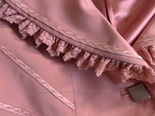 Очень красивый и стильный костюм бледно розового цвета, цвет такой и есть, не яркий. Кофточку носила часто, а вот все остальное одевала пару раз, покупала себе на выпускной этот костюм, а потом поправилась и не влезла в него. ПараметрыЮбка - ПОБ 44, талия полуобхват34, Длина 55