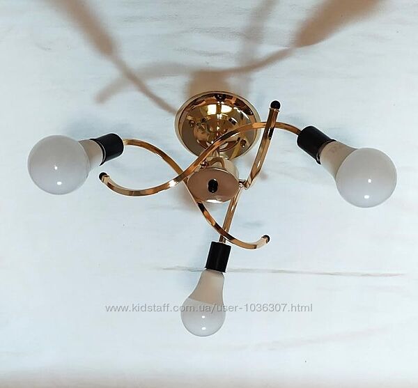 Люстра светильник на 3 лампы в стиле лофт Материал корпуса - металл Цвет корпуса - золото+черный Тип патрона - Е27 Диаметр (без учета габаритов лампочек) - 42 см Высота (без учета габаритов лампочек) - 18 см Лампочки в комплект не входят --- Отправка компаниями Новая почта, Укрпочта, Мист