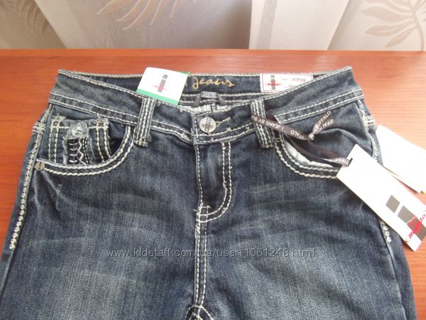 Отличного качества на девочку 10 - 13 лет, . Красивая строчка, карманы с орнаментом, красивой строчкой. Состав: 68% котон, 30% полиэстер, 2% спандекс. Фирма BUFFALO.:Размер американский 10.Замеры: ширина (по поясу)- 32,5см, длина по внешнему шву-86см, по внутреннему шву- 66,5 см, полу обхват бедер- 37см. Посадка по шву: впереди- 21 см, сзади- 26 см.Ширина штанины сверху 21,5см, посередине 16,5см, внизу 18см.Есть джинсы этой фирмы, размер 10.Состав: 85% котон, 14% полиэстер, 1% спандекс.Замеры: ПО пояса 33,5см, бедра 37см, посадка спереди 20,5см, сзади 27см, ширина штанины сверху 21,5см, посередине 16,5см, внизу 18см. Цена 320 грн.