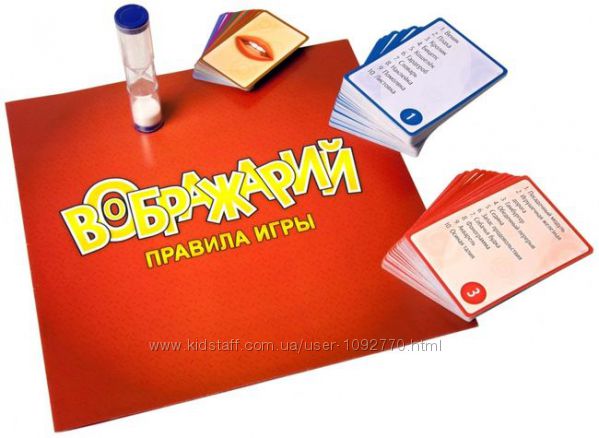 Настольная игра ВоображарийУвлекательная игра на загадывание и разгадывание слов для весёлой компании. Каждый ход выбирается новый ведущий, который должен объяснить другим слово или словосочетание при помощи рассказа, рисунка или яркого представления. Будьте находчивы, изобретательны и общительны, ведь время бежит очень быстро и каждый момент может стать решающим!