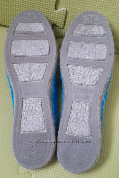 Еспадрильки голубі: 38 розмір, устілка 24 см. Підошва комбінована плетіння і гума. Верх з натуральної тканини. Дуже зручні. Ідеальні на літо. Стан нових. Не ношені але без бірок. Країна виробний Іспанія.перешлю