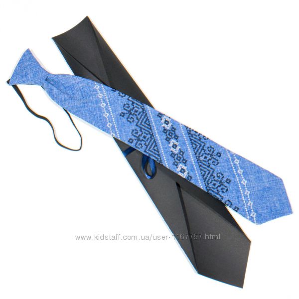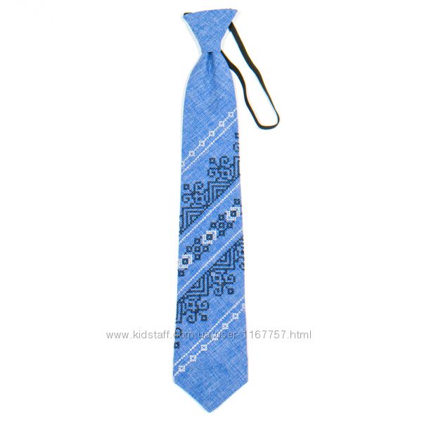 Підліткова краватка з вишивкою №784 розроблена для підлітків віком від 9 років. Одягається за допомогою резинки. Краватка виконана у вигляді самов´яза для солідного вигляду.Дана вишита підліткова краватка виготовлена із костюмної волошково-блакитного кольору. Довжина виробу з вузлом близько 35см, ширина в найширшому місці 5,5 см.