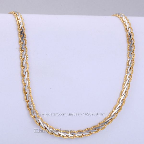 Очень красива, с виду дорогая цепочка собрана из звеньев двух сплавов и сочетает в себе цвета золота и серебра. Ее вполне можно именовать, как колье.ШИРИНА: 3 мм ДЛИНА в сложенном состоянии: 45 см