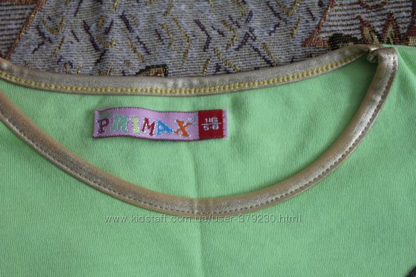 Туника (платье) фирмы Primax в отличном состоянии. Размер указан 5-6 лет, рост 116 см. Качественный 100% хлопок. Очень легкое, приятное в носке , прямого силуэта . Пятен, дефектов нет.Ширина между подмышками 31 см, ширина по плечам 29 см, ширина в районе талии 29 см, длина по спинке от горловины 52 см.