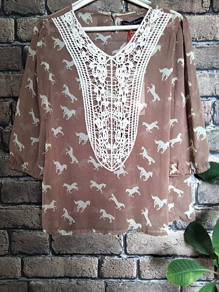 Легчайшая блуза с вышивкой в принт - "лошадки".