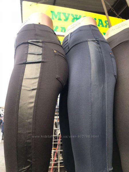 Подробное описание: Женские леггинсы лосины с вставками кож зам Осень Зима