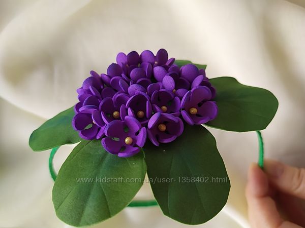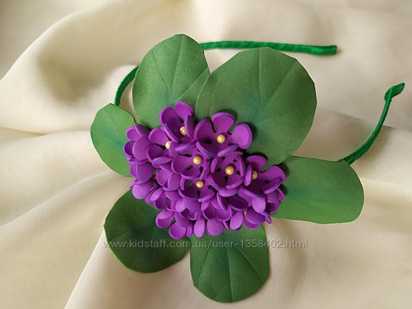 Авторской обруч "Фиалка" ручной работы. Выполнен фоамирана и атласный лент. Все листики и лепесточки выполнены вручную. Великолепный аксессуар для вас и ваших маленьких принцесс, размер универсальный. Цветы красивого фиолетового цвета, в жизни ярко и красиво!!!)))Украсит любой наряд и сделает образ неповторимым. Возможно изготовление в другом цвете. Срок изготовления 1-2 дня.