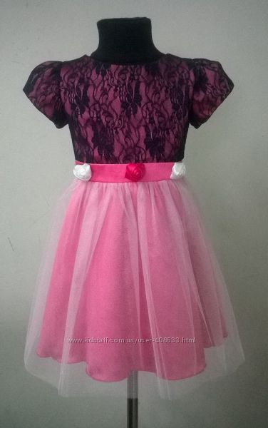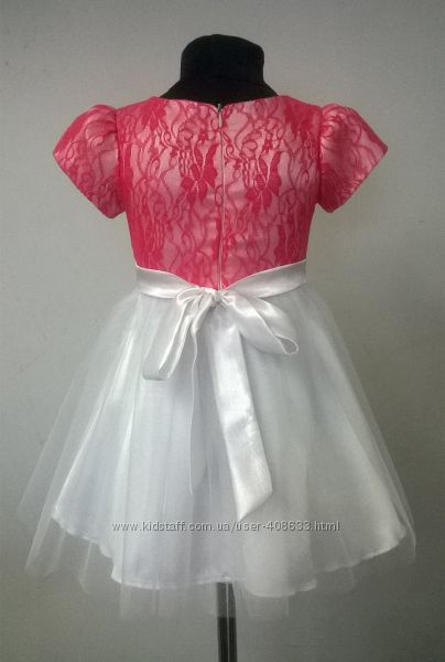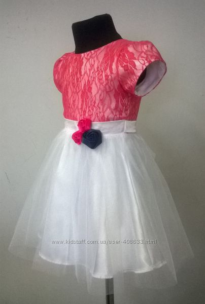 Очень красивое и нежное платье для маленькой леди.На подкладке. С фатином. Верхний слой-гипюр и фатин. Второй слой-атлас.Подкладка -х/б ткань.Размеры 104,110,116,122.
