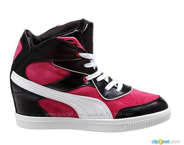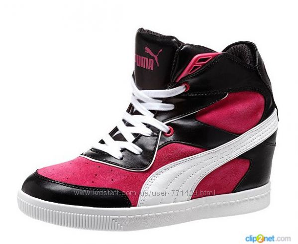 Продаю новые кожаные сникерсы на танкетке фирмы Puma (оригинал, из США)цвет: черно-розово-белые (как на фото)