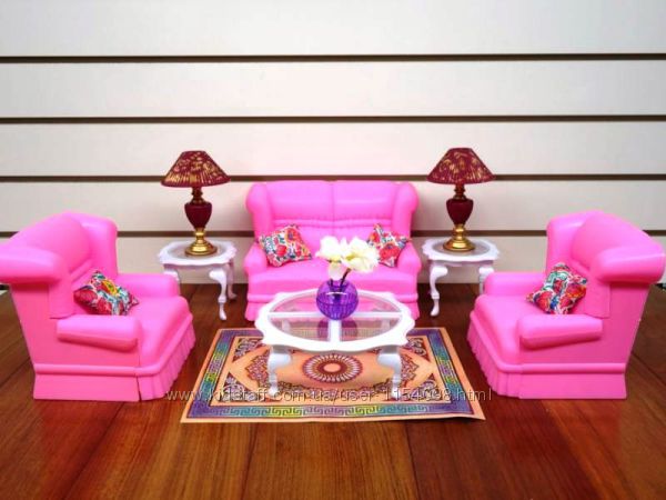 Словно в настоящей ванной комнате Вашу доченьку ждет - диван, 2 кресла, столик